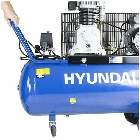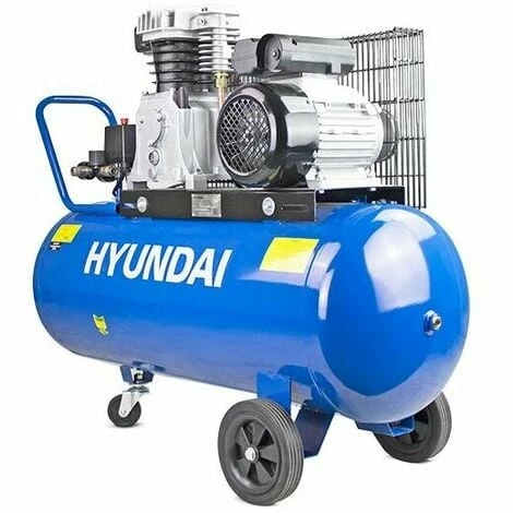 The Hyundai HY3100P Air Compressor is one exceptionally heavy-duty and efficient unit which is driven by a powerful 3hp twin cylinder and comes with a cast iron belt drive. This twin cylinder air compressor is the perfect unit professional workshops and commercial uses for spray-painting, air tools, inflating tyres and ideal for workshops and commercial garages. Plus, this Hyundai Belt drive air compressor can be easily moveable thanks to its 3 wheels and its weight of 76 kg. Additionally, with a twin cylinder slow running pump with cast iron cylinders for a prolonged lifetime as well as an aluminium cylinder head for an enhanced cooling, this HY3100P Hyundai Air Compressor has the capacity to generate an optimum working pressure of 145 psi or 10 bar. In The Box: HY3100P Electric Air Compressor, Manual, Compressor pump is filled with oil ready to use Warranty: Covered by Hyundai 2-year standard warranty. Product Features: Powered by a Hyundai 2.2kW / 3hp 230v electric motor with a standard 13A UK Plug., Twin cylinder belt drive slow running pump., Large 100 litre tank capacity provides an air displacement of 14CFM and 10 bar maximum air pressure., Fitted with Euro quick release connectors and twin gauge pressure control regulator., Ideal for professional workshop and garage use. Compressor Care: Pressure safety valves on Hyundai air compressors have been updated in compliance with the latest CE certification standards. The pressure release pull ring has been removed from the safety valve to prevent it being misused to drain the air from the compressor tank, causing excessive wear to the valve. Air and moisture should always be released using the drain valve located on the bottom of the tank. Product Specs: Model   HY3100P, Motor Power 2.2kW / 3hp, Voltage 230.00, Air Displacement 14CFM, Discharge Pressure 10BAR / 145PSI, Tank Size 100L, Motor Speed     1050rpm, Air Outlet Euro Quick Release, Dimensions L X W X H (mm) 1060X410X770, Net Weight 76kg, Covered by Hyundai 2-year warranty……..( DELIVERY UPDATE: Please note that we offer Free Shipping to Mainland UK only! All other deliveries to any British Islands, Channel Islands, Isle of Wight, Isle of Man, Scilly Isles, the North of Scotland and Scottish Highlands & Islands will come with additional delivery charges. Due to circumstances beyond our control, we’re unfortunately now no longer able to deliver to residential addresses in Northern Ireland & Ireland)