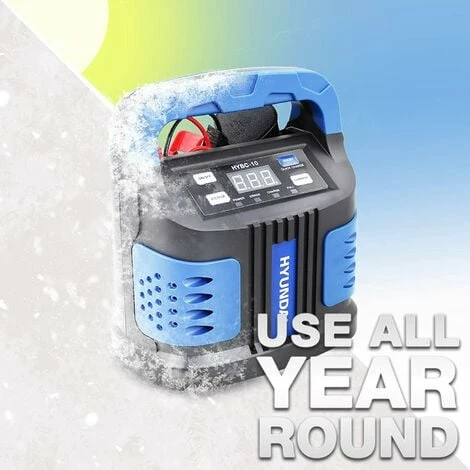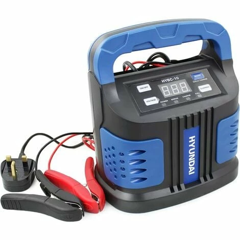 The HYBC-10 is a 230V Battery Boost Charger from Hyundai. Designed for charging all types of 12V lead-acid, including WET (Flooded), GEL, MF (Maintenance-Free), EFB (Enhanced Flooded Battery), AGM (Absorbed Glass Mat) batteries. The HYBC-10 features a built-in intelligent microprocessor making charging faster, easier and safer. This chargers safety features including spark-proof, protection for reverse polarity, short circuit, overcurrent, overcharge and overheat. Auto-memory, after power on, the display window of the charger will show the last selected mode (except BOOST mode). The charger will enter charging mode in around 5 seconds. When the charge LED is on, it is charging, when the charge LED is off and the full LED is on the charging is complete. But do not break the connection immediately. It will automatically switch from full charge to maintenance status to maintain batteries during prolonged periods of storage. In the box: HYBC-10, user manual, cable clamps. Covered by Hyundai 1 year warranty. BrandHyundaiModelHYBC-10Item Weight2.5 KgPackage Dimensions23 x 20 x 14 cmManufacturer referenceHYBC-10Manufacturer Part NumberHYBC-10Cover IncludedCable Clamps ( DELIVERY UPDATE: Please note that we offer Free Shipping to Mainland UK only! All other deliveries to any British Islands, Channel Islands, Isle of Wight, Isle of Man, Scilly Isles, the North of Scotland and Scottish Highlands & Islands will come with additional delivery charges. Due to circumstances beyond our control, we’re unfortunately now no longer able to deliver to residential addresses in Northern Ireland & Ireland)