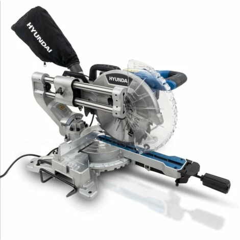 BRAND NEW HYUNDAI PRODUCT MAY 2022……The Hyundai HYMS2000E electric sliding mitre saw is one of the bigger and more efficient version of the two electric mitre saws from Hyundai. This Hyundai mitre saw ihas been designed with a large high torque 2000W motor and 255mm tungsten carbide tipped blade for a range of DIY woodworking projects, including making furniture such as benches, display shelves and picnic tables, cutting wood / laminate flooring or decking to size, and cutting trim, skirting boards and beading. This HYundai electric saw allows you to make precise bevel and mitre cuts in solid wood, MDF, laminate, and plastic up to a maximum cutting height of 90mm, making it ideal for a wide range of home or garden renovation projects………..Product Features: Achieve a precise 0-45° bevel: Table and head can be tilted for easy cuts on awkward pieces of wood, 2000W electric mitre saw with 255mm tungsten carbide-tipped blade: Ideal for tasks such as cutting trim, cutting flooring to size or making furniture, Vacuum attachment socket: To effectively remove any dust or particles when sawing wood, compatible with the HYVI3014 Wet & Dry Vacuum, Safe to use: Features a wood clamp and side supports for additional stability when cutting, Peace of mind: 3 year Hyundai home-use warranty* / 1 year commercial warranty* (terms apply), Maximum cutting height of 90mm: Able to cut wood, MDF, laminate and plastic, Integrated laser cutting guide: For easy and precise cuts every time, Low maintenance electric saw: Supplied with a long 3m power cable, 2000W electric sliding mitre saw, 255mm blade diameter for cutting wood and plastic, Achieve a single bevel cut of between 0° to 45°, 90mm maximum cutting height, Integrated laser guide for easy, precise single bevel cuts, Includes collection bag for wood chippings and shavings, Also compatible with the HYVI3014 Wet & Dry Vacuum Cleaner (not included), 3m power cable, Low maintenance and easy to use,3 year home-use warranty* / 1 year commercial warranty*…………………….Product Specs: Model HYMS2000E, Start Method Electric, Blade Diameter 255, Blade Size (mm) 255, Number of Teeth Of Supplied Blade 24, Disc Bore Size (mm) 30, Bevel Angles 0-45 degrees, Max Cutting Depth (mm) 90, Straight Cut Capacity (mm) 305 x 90, Max Cutting Capacity (Left) (mm) 305 x 90, Max Bevel Angles (L/R) 45, Max. Cross Cut (mm) 305 x 90, Mitre Saw Bevel Slide Left/Right, No. of Bevels Single, Mitre Stop Angles -45°/ +45°, Safety Features Blade Guard, Features Laser Guide, AC Voltage 230, Motor Type Copper Wound, Cable Length (m) 3, Power (w) 2000, No Load Speed (RPM) 5000, Gross Weight (kg) 15.1, Net Weight (kg) 17.45, Fully Assembled Dimensions (H x W x L) (mm) 737 x 470 x 604, Package Dimensions (H x W x L) (mm) 455 x 4675 x 660, Fuel Type Electric, Product Type Mitre Saw, Warranty (years) 3, Commercial Warranty (years) 1……………….In The Box: Mitre saw, Dust Bag, Wrench, Wood Clamp 3m Cable with BS Moulded Plug with Laser………….( DELIVERY UPDATE: Please note that we offer Free Shipping to Mainland UK only! All other deliveries to any British Islands, Channel Islands, Isle of Wight, Isle of Man, Scilly Isles, the North of Scotland and Scottish Highlands & Islands will come with additional delivery charges. Due to circumstances beyond our control, we’re unfortunately now no longer able to deliver to residential addresses in Northern Ireland & Ireland)