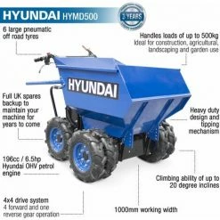 Mini Dumper / Power Barrow Hyundai HYMD500 196cc 4-Wheel Drive 500kg Payload