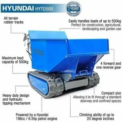 Mini Dumper / Power Barrow / Transporter Hyundai HYTD500 196cc Petrol 500kg Payload Tracked