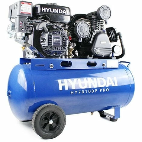 The HY70100P is a petrol driven air compressor designed for enthusiast and professional use; built to industrial standards. Powered by a 7hp petrol engine and coupled to a heavy-duty; two-stage twin piston; cast iron pump.