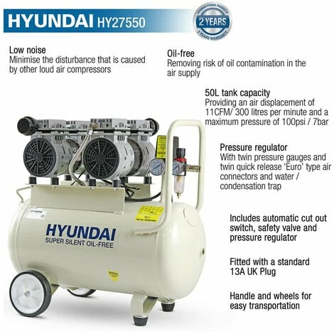 - 1 x Hyundai HY27550 50 Litre Silenced Air Compressor