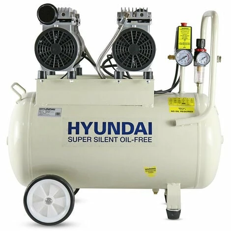 The Hyundai HY27550 is a powerful yet compact oil free low noise, often known as a ‘silent’ air compressor from Hyundai. Designed for DIY and trade applications the HY27550 silenced oil free air compressor is ideal for spray-painting, blowing away dirt and dust, nailing, inflating tyres or operating air tools.