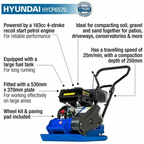 - 1 x Hyundai HYCP6570 163cc Petrol Compactor / Wacker Plate