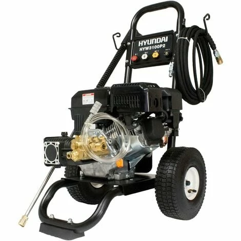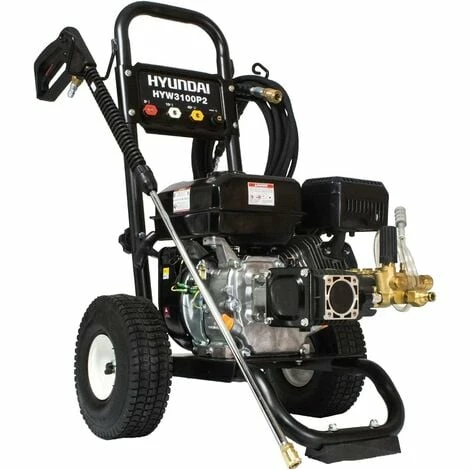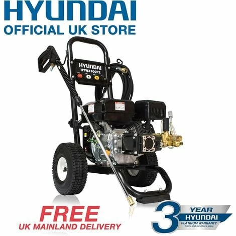 The Hyundai HYW3100P2 petrol pressure washer is powered by the Hyundai 212cc 4-stroke high torque, low emissions recoil start petrol engine, which is engineered to handle your toughest cleaning jobs with ease. The cold water, gravity fed HYW3100P2 delivers 3100psi and a flow rate of 10L/min for quick, easy and effective cleaning of driveways, patios, vehicles, windows and other demanding jobs. The new 212cc engine has tremendous mid range torque so the machine does not have to be operated at maximum revs while cleaning. This makes for a more pleasant, quieter user experience and reduces fuel consumption, whilst promoting long engine life. The user friendly easy start recoil engine makes jobs where no electricity is available incredibly convenient, and it’s also fitted with tough pneumatic tyres which makes this a portable pressure washer. The tubular steel frame and anti vibration feet provides all round protection and stability. The trigger gun & lance rest provides easy accessibility, likewise with the built in nozzle compartment. It’s supplied with a 30ft / 10m hose. The Annovi Reverberi (AR) pump provides outstanding performance and reliability, with replacements pumps and spares available to maintain your pressure washer for longer life. You can cut your cleaning times in half with the included Turbo Nozzle, which enhances the cleaning power of the HYW3100P2 and is ideal for heavy dirt and grime removal. The included 4 quick connect nozzles(0°, 15°, 40° and standard soap nozzle) can also be changed quickly and effortlessly. In the box: 4 Quick Release Nozzles, Turbo Nozzle, Trigger Gun, Lance, 10m Hose, Spark Plug Spanner, Quick Start Guide. Additional accessories are compatible and available, including a snow foam lance which provides complete foam coverage of a vehicle and loosens the dirt on the exterior. ( DELIVERY UPDATE: Please note that we offer Free Shipping to Mainland UK only! All other deliveries to any British Islands, Channel Islands, Isle of Wight, Isle of Man, Scilly Isles, the North of Scotland and Scottish Highlands & Islands will come with additional delivery charges. Due to circumstances beyond our control, we’re unfortunately now no longer able to deliver to residential addresses in Northern Ireland & Ireland)