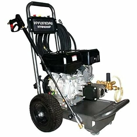 The Hyundai HYW4000P petrol pressure washer is the top of the line model designed for heavy-duty and professional use. A powerful 14hp IC420 petrol engine powers the unit and the Annovi Reverberi (AR) pump drives a massive 15 litres of water through every minute. This AR pump can produce a maximum output of nearly 4000psi which is why this unit is favoured by cleaning professionals and used in industrial, agricultural and commercial environments. Although this is the largest unit that Hyundai produces, the HYW4000P pressure washer is mounted on a solid base with large wheels that have exceptional balance. This means that the unit, weighing in at 63kg, is easy to transport. The 15m hose and lance are included as standard and changing the attachments couldn’t be made easier due to the quick release fittings and connections. To make the very most of the impressive power of the HYW4000P the unit also comes with a turbo nozzle that can be used up to a maximum of 4000psi. This will increase the efficiency of your cleaning tasks and shorten the time by up to 25% To guarantee the longevity of the Annovi Reverberi pump, the HYW4000P also features a thermal relief valve which regulates the temperature of the pump. Box Contains 1 x Four quick-release nozzles, 1 x Turbo nozzle, 1 x High-pressure hose, 1 x Gun, 1 x Lance, 1 x Manual, 1 x Quick start guide ( DELIVERY UPDATE: Please note that we offer Free Shipping to Mainland UK only! All other deliveries to any British Islands, Channel Islands, Isle of Wight, Isle of Man, Scilly Isles, the North of Scotland and Scottish Highlands & Islands will come with additional delivery charges. Due to circumstances beyond our control, we’re unfortunately now no longer able to deliver to residential addresses in Northern Ireland & Ireland)