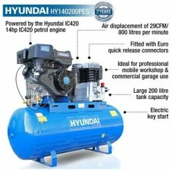 Hyundai HY140200PES 200L Floor-Mounted E-start Petrol Air Compressor 14hp 420cc