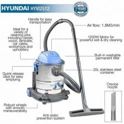 Hyundai HYVI2512 3-in-1 25L Wet/Dry Vacuum Cleaner 1200W 230V